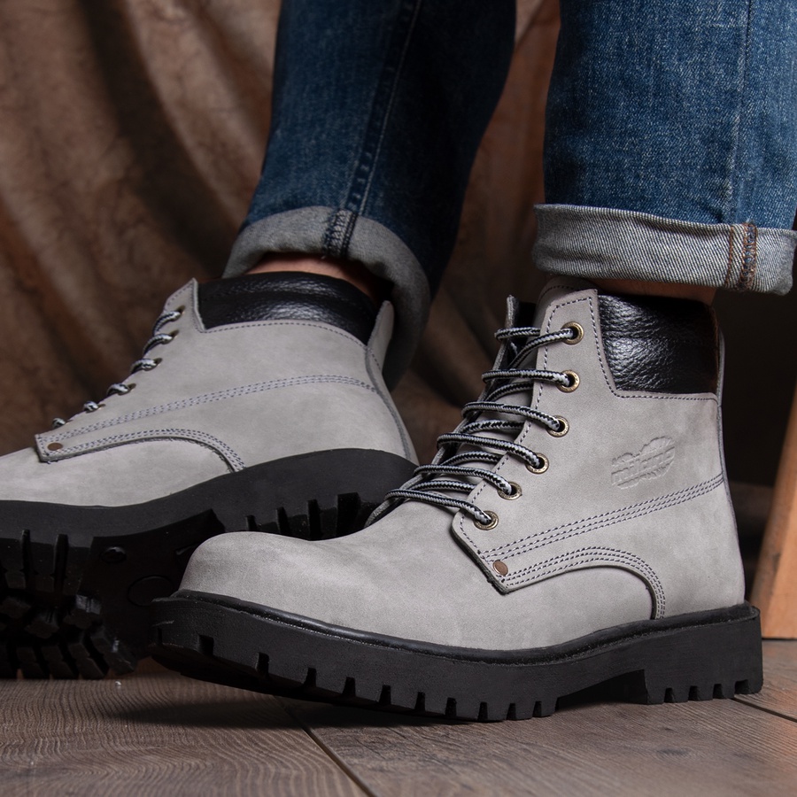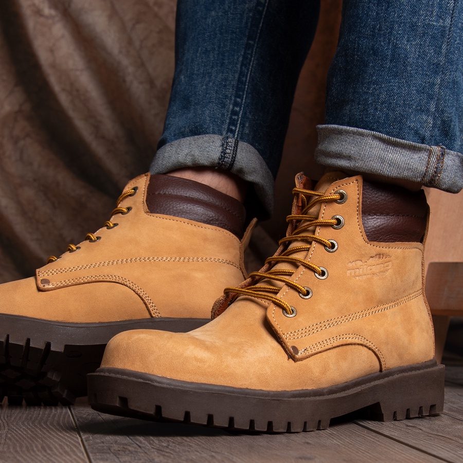 سيفتي رجالي أنيق مصنوع من الشامواه الطبيعي بنعل رابر مطاطي وتقفيل بجودة عالية. متوفر بمقاسات من 41 إلى 46، تصميم عملي وأداء احترافي.